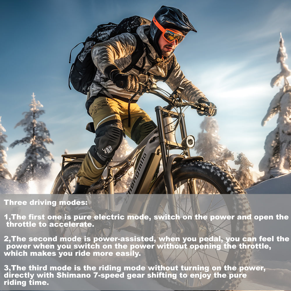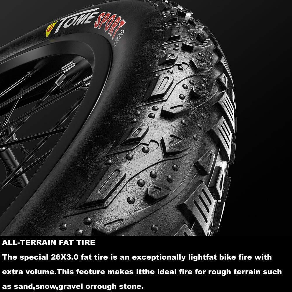 The 26 Inch Mountain Fat Tires Provide Better Grip And Traction On The Toughest Terrain. The Biggest Fun Is To Ride On The Beach Or Snow, Mountain Roads, It Will Also Leave A Good Impression.