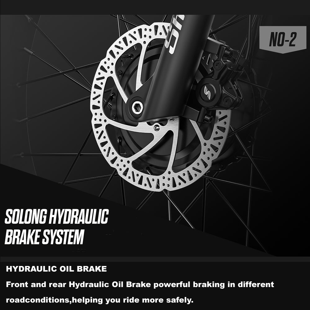 Front and rear Hydraulic Oil Brake powerful braking in different roadconditions,helping you ride more safely.